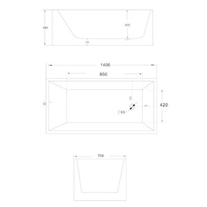 1400 mm Square Multi-fit Freestanding Bath Tub