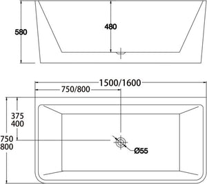 Mandy | 1600 Back to Wall Freestanding Bath Tub