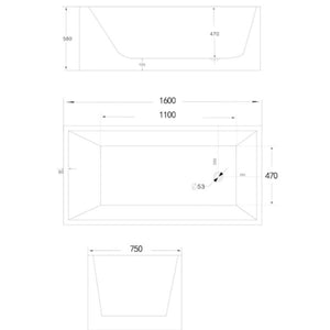 1600 mm Square Multi-Fit Freestanding Bath Tub