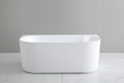 Ceto | Bari Groove 1500mm Fluted Oval Freestanding Back to Wall Bath Gloss White Finish