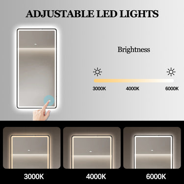 Nova | 450 x 900mm Black Frame Soft Square LED Mirror Three colour option 3000K / 4000K / 6000K