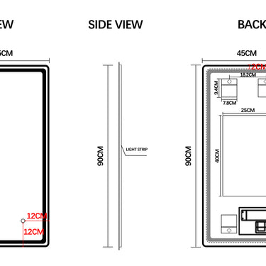 Anti Fog Function - While using the bathroom, the warm water vapor may cause ordinary mirrors to Fogg up. Not with the Pill mirror, the anti-fog system heats the surface of the mirror to remain the high definition in the circumstance of water vapor