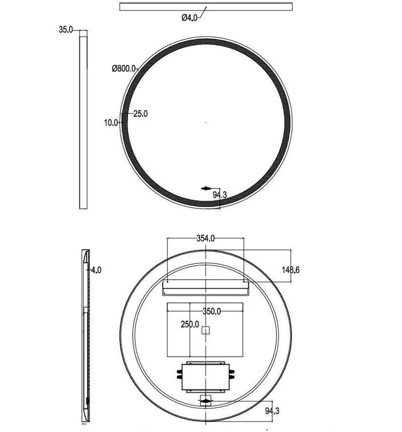 Ceto | Luna 800mm Touchless LED Round Mirror Brushed Nickel