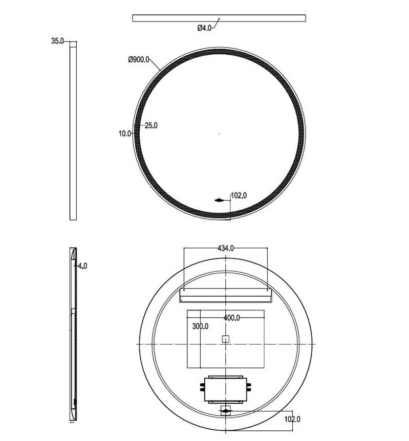Ceto | Luna 900mm Touchless LED Round Mirror Brushed Nickel