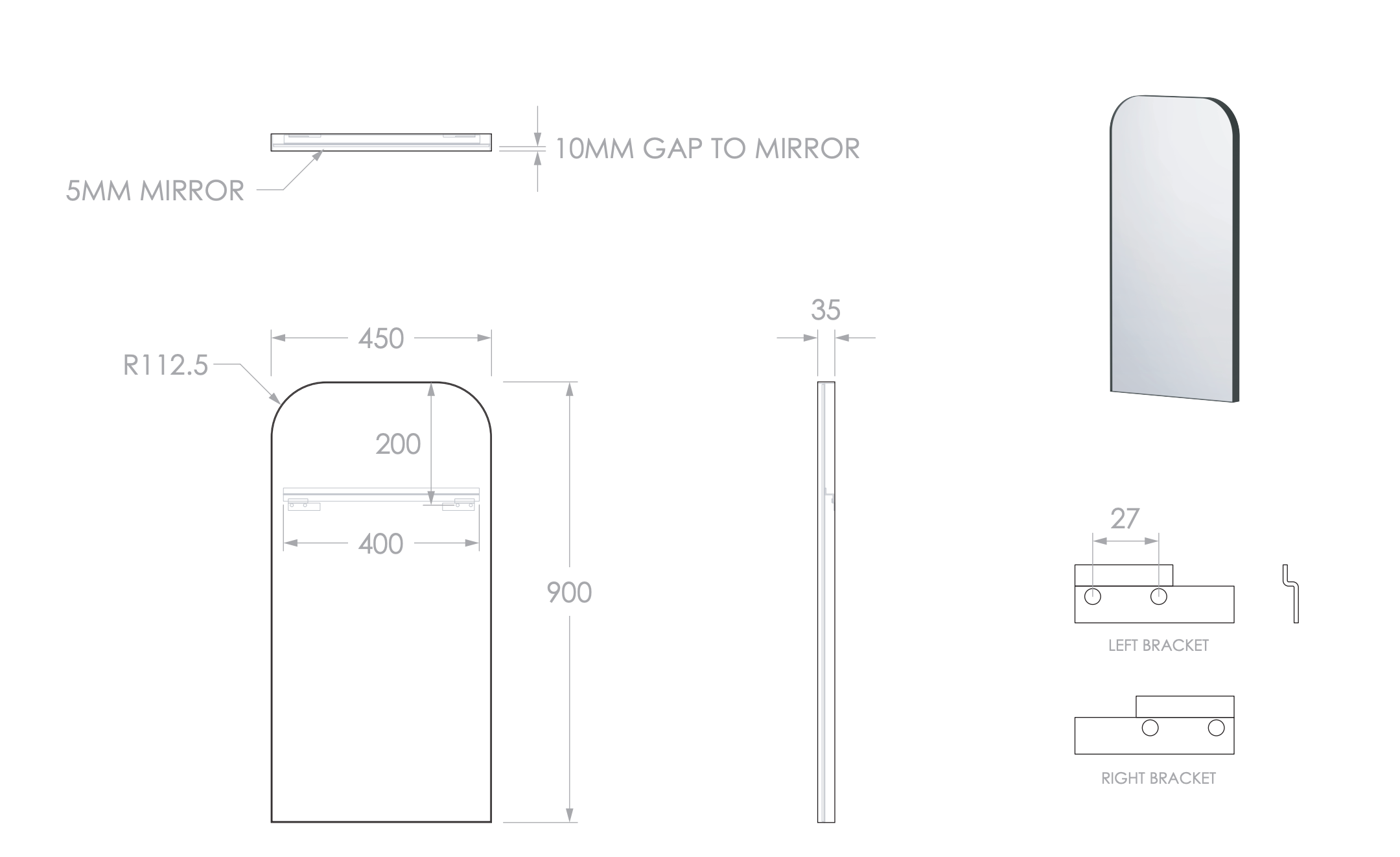 • Mirror is 5mm copper-free with anti-oxidation treatment & safety film