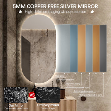 Materials - This mirror adopted copper-free and eco-friendly raw materials. Tested in accordance with AS/NZS 60598.1 and AS/NZS 60598.2.1 and is SAA accredited.