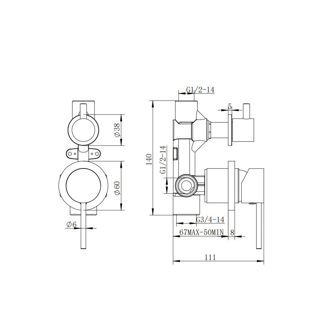 Wall Mixer Diverter with Pin Lever Handle