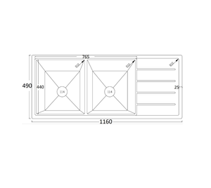 Arcko Black Under/over-mount Double Bowl Granite Sink 1160 x 490 x 230 mm