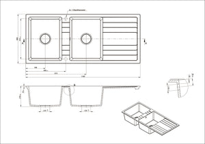 Ria | Double Bowl Granite Sink With Drainer