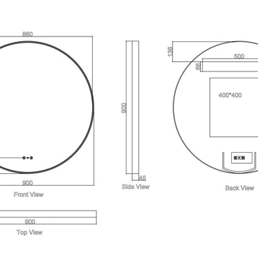 900mm x 900mm x 45mm – 36W (Defogger: 400mm x 400mm)