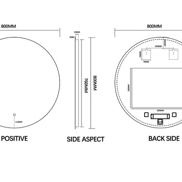 Miro | 800 x 800 mm LED Round Mirror Three colour option 3000K / 4000K / 6000K