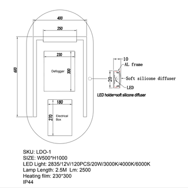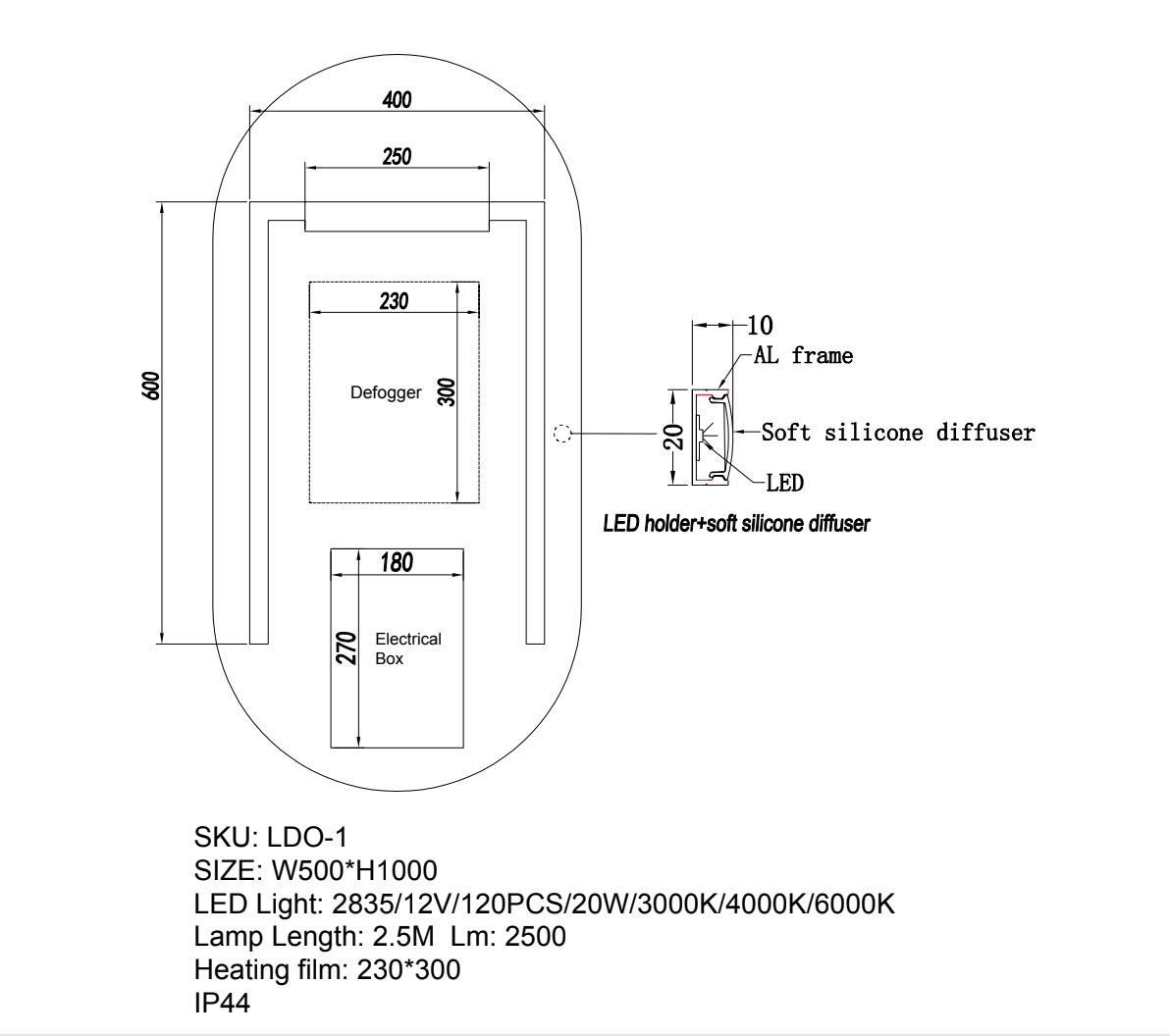 Oval 500 x 1000mm LED Mirror 3000K / 4000K / 6000K