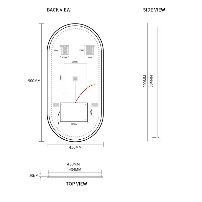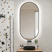 Oval Pill Touchless Back-Lit Matte Black 450 x 900 LED Mirror - Three Light Temperatures