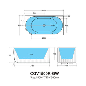 Capri | 1500mm Fluted Oval Freestanding Right Corner Bath Matte White
