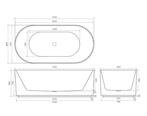 CETO | Ally Groove 1700mm Matte White Freestanding Bathtub