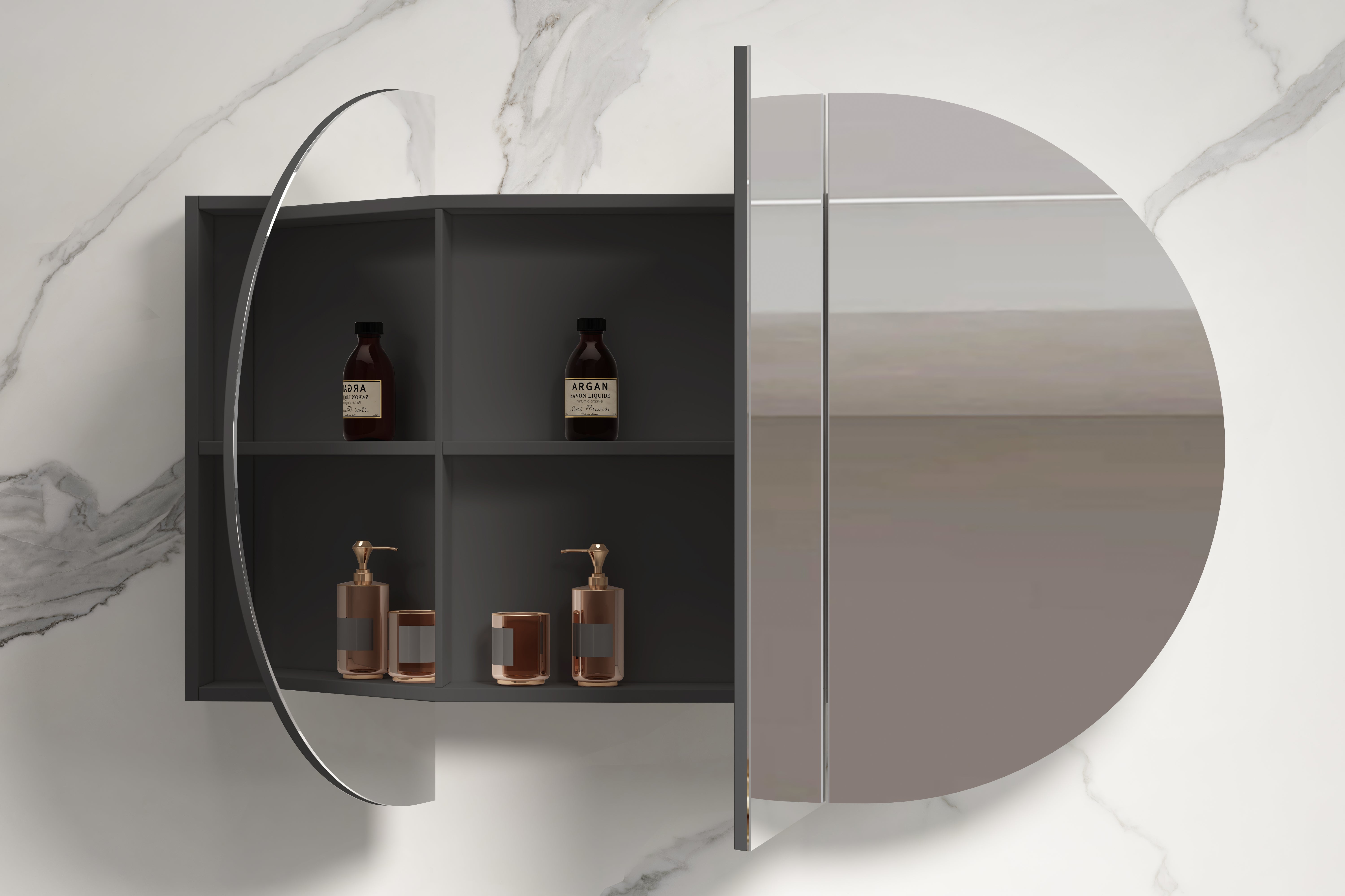 Rosy Matte Black Oval Shaving Cabinet