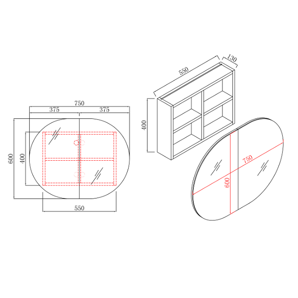 - 750 x 600 x 130mm