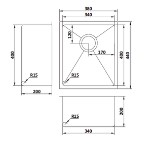 Handmade| Gold Single Bowl Round Corner Sink 440 X 380 X 200 X 1.2mm