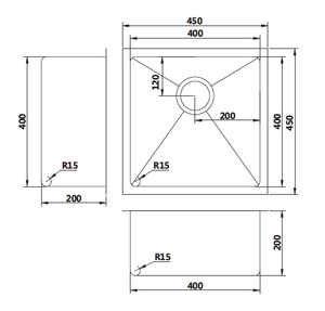 Handmade| Gold Single Bowl Round Corner Sink 450 X 450 X 200 X 1.2mm
