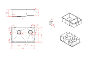 Handmade | Double Bowl Square Corner Sink 670 x 440 x 200 x 1.2mm