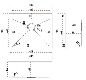Handmade | Single Bowl Round Corner Sink 606 x 512 x 228 x 1.2mm