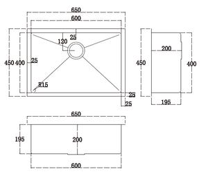 Handmade | Single Bowl Round Corner Sink 650 x 450 x 200 x 1.2mm