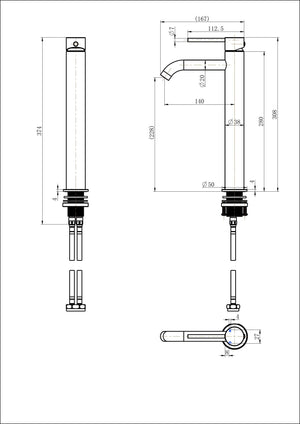 Star Mini | Champagne Tall Basin Mixer Curved Spout Tap