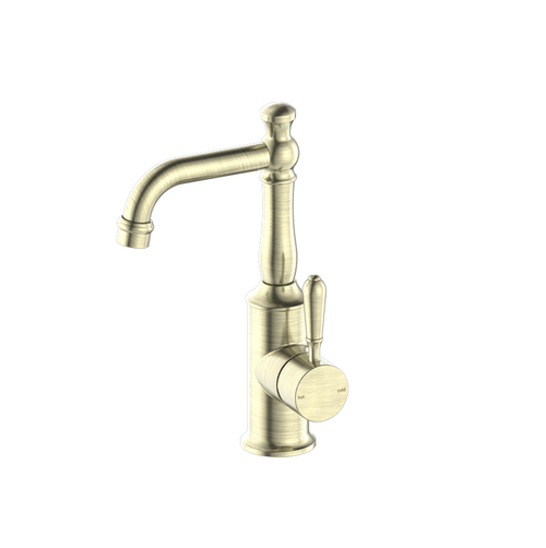 York  |  Aged Brass kitchen Mixer Goosneck Spout With Metal Lever