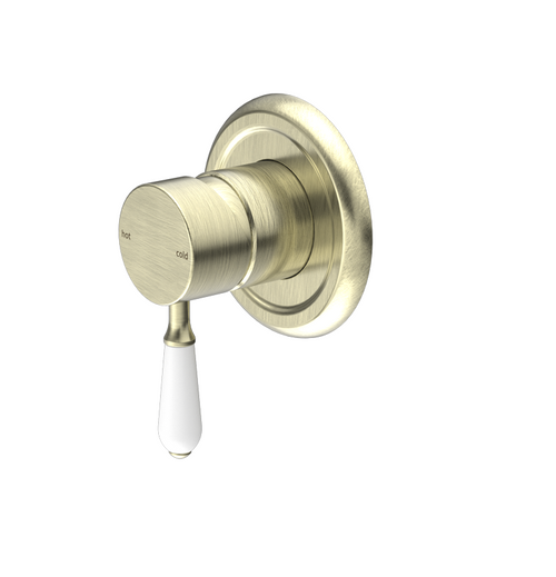 York | Aged Brass Shower Mixer With White Porcelain Lever