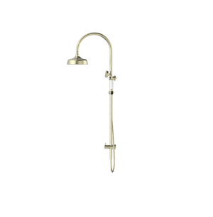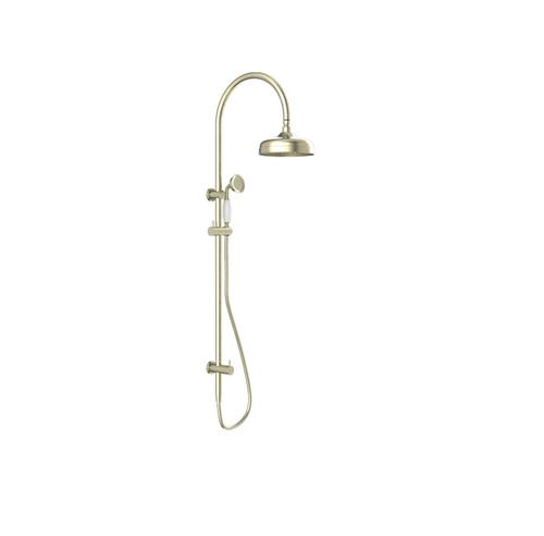 York | Aged Brass Twin Shower With White Porcelain Hand Shower