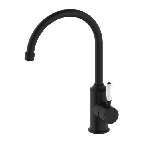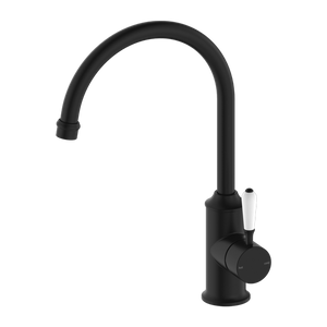 York | Black  Kitchen Mixer Goosneck Spout With White Porcelain Lever
