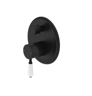 York | Black Shower Mixer With Divertor With White Porcelain Lever