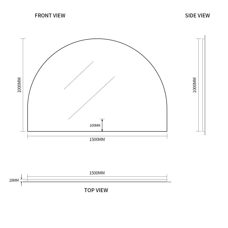 Arched Touchless 1500 x 1000 LED Mirror - Three Light Temperatures