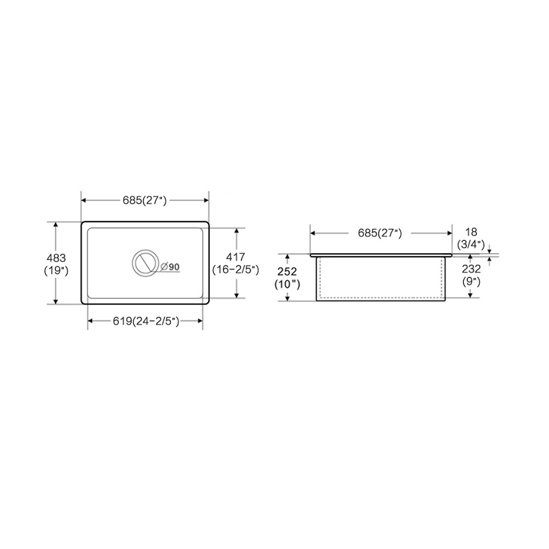 Note: Due to the nature of the fireclay ceramic, dimensions should be used only as a guide; each sink can vary 1-2%, It is recommended that the sink is measured on-site before cabinetry is built.