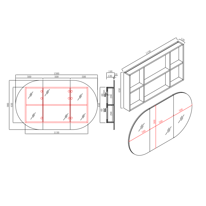 • 1500 x 900 x 130mm