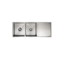 Meir | Brushed Nickel Lavello Kitchen Sink Double Bowl & Drainboard 1160 x 440 - PVD