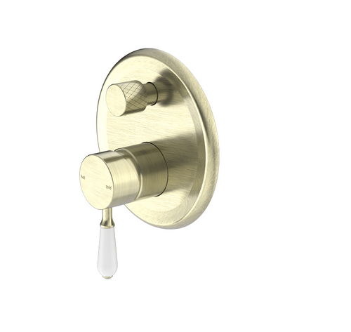 York | Aged Brass Shower Mixer With Divertor With White Porcelain Lever