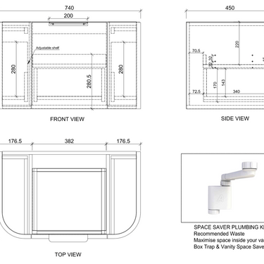 Houston matt white wall hung plywood vanity 740x450x450mm. The Houston vanity showcases a sophisticated curved silhouette that enhances its contemporary appeal. Equipped with two spacious side drawers, the cabinet ensures ample storage for all your bathroom essentials. The big curved corner goes with a matched White Carrara or Pure White Stone top. The Houston Series vanity combines style and practicality, making it the centerpiece of a luxurious bathroom.