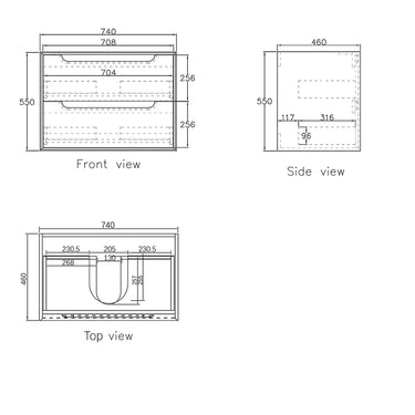 Otti | Byron 750mm Black Oak Wall Hung Vanity