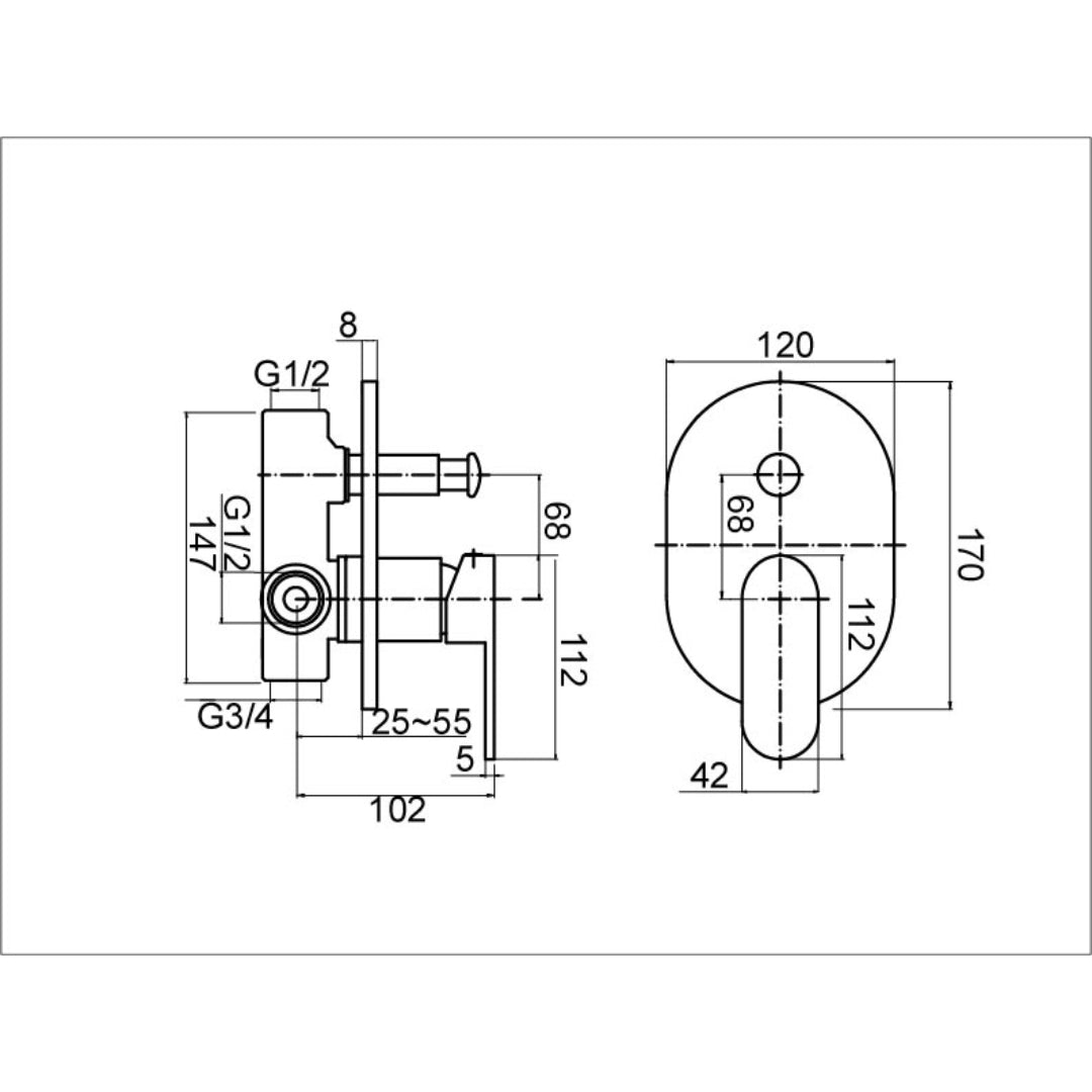 Wall-Mounted Diverter Mixer for Bath or Shower