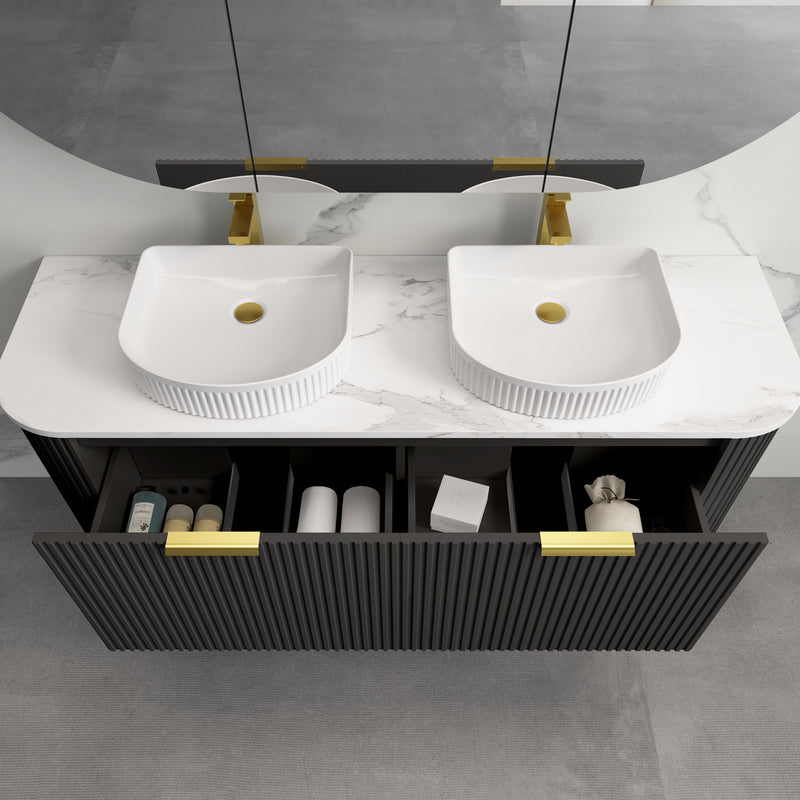 Rio 1500 Curved Fluted Matte Black Wall Hung Vanity