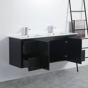 Acacia | 1500 Mate Black Double Bowl Wall Hung Vanity