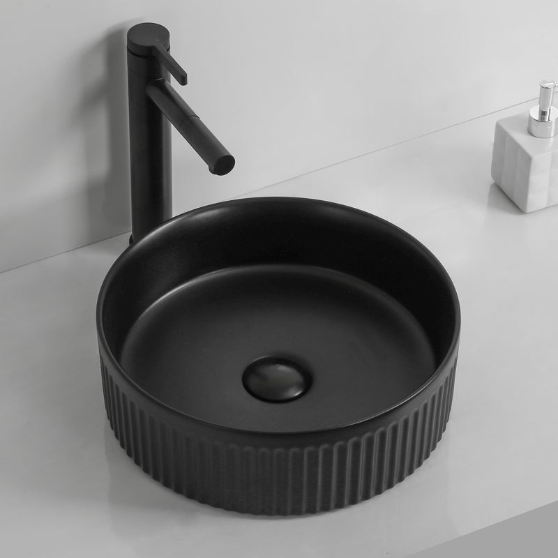360mm Round Flutted Matte Black Above Counter Basin